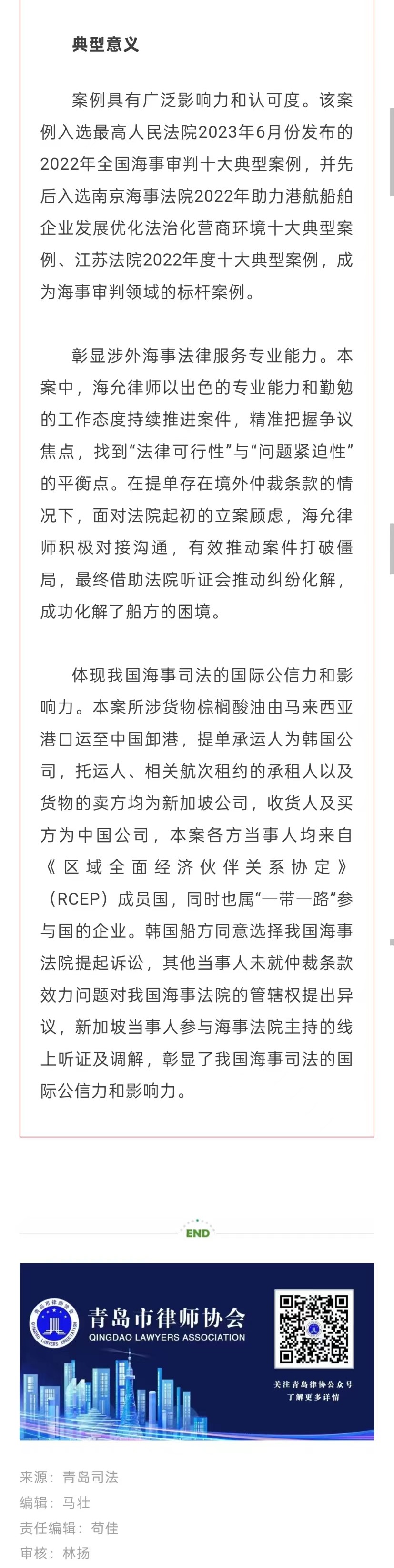 海允所承办案件入选【青岛市涉外法治建设优秀案例】