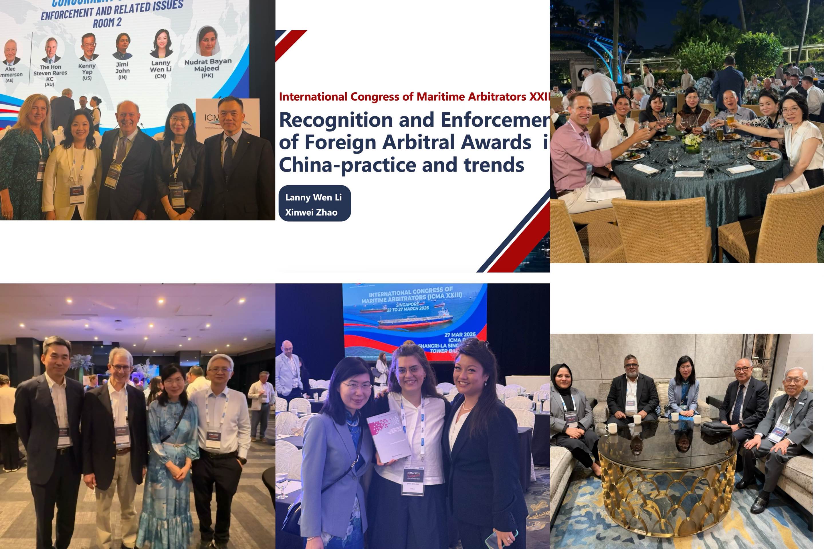 本所管理合伙人赵新伟律师于2026年3月23日至27日期间,出席新加坡第23届国际海事仲裁员大会(ICMA)。赵新伟律师作为合著作者,撰写专业论文《外国仲裁裁决在中国的承认与执行:实践与趋势》。该论文由天津仲裁委李雯律师在大会进行宣讲,内容引发与会嘉宾的深入研讨与广泛关注。